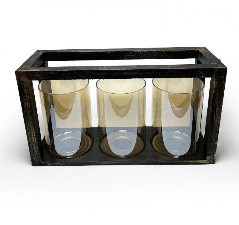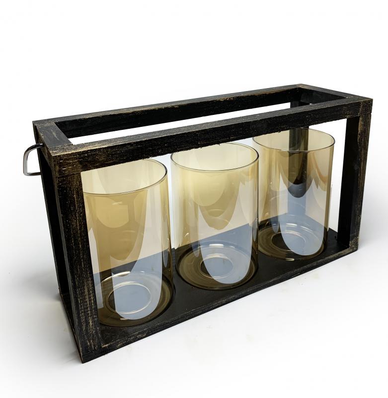 3'lü Ahşap Siyah Altın Varak Fener Mumluk HK0974-SAV