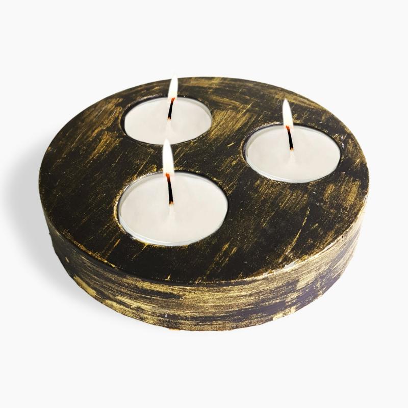 | 3'lü Yuvarlak Beton T-Lightlık Altın Varaklı Not: Mumlar Ürüne Dahil Değildir. |