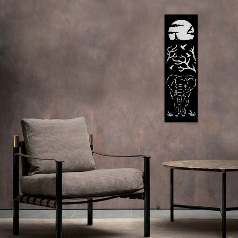 | Afrikada Fil Temalı 2 Katlı Ahşap Oyma Tablo Gümüş & Siyah |
