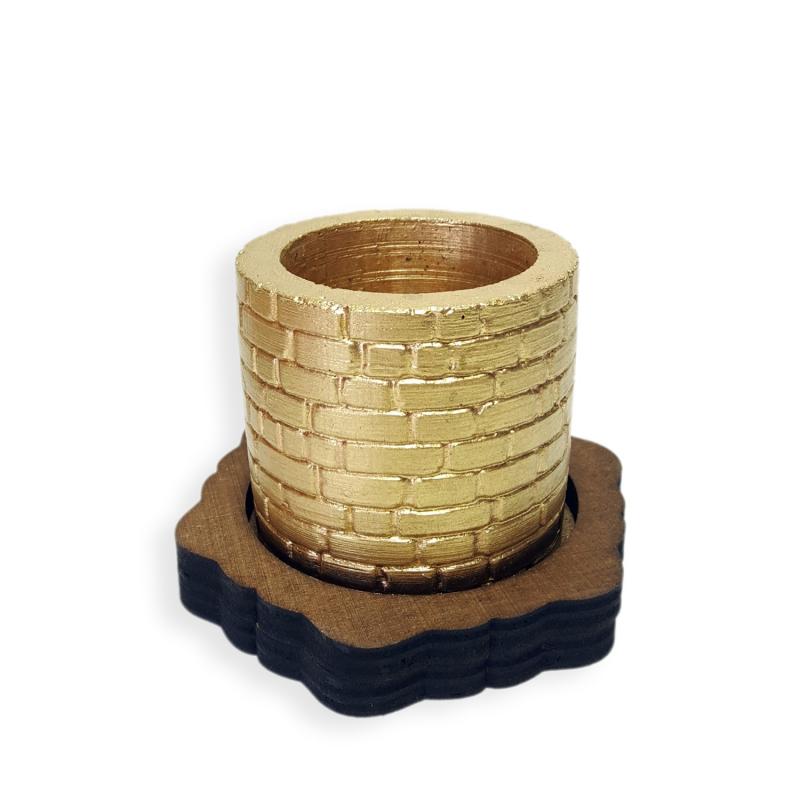 Ahşap Ayaklı, Duvar Desenli Beton Saksı Altın HK1653