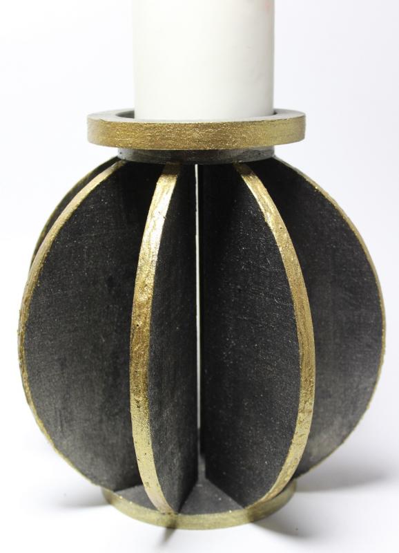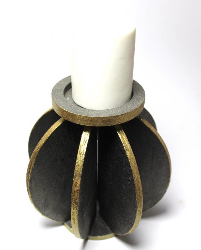 | Ahşap Küre Mumluk Siyah Üzerine Altın Varaklı, Büyük |
