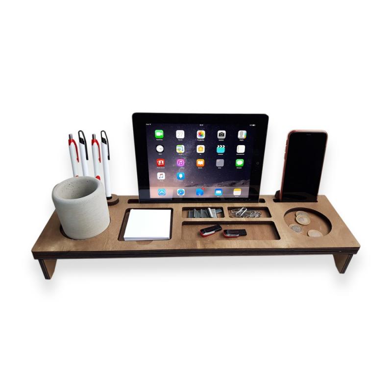 Ahşap Masaüstü Organizer "Beton Kalem Kutu Hediyeli"