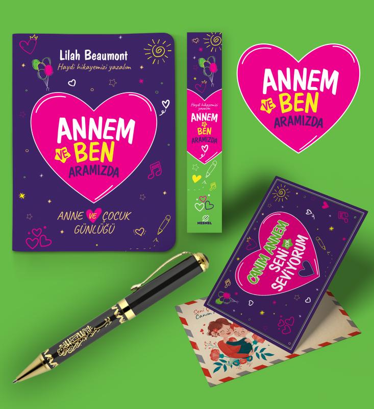Annem ve Ben Aramizda Günlügü Karpostal-Ayraç ve Besmele Metal Siyah Roller Kalem Seti