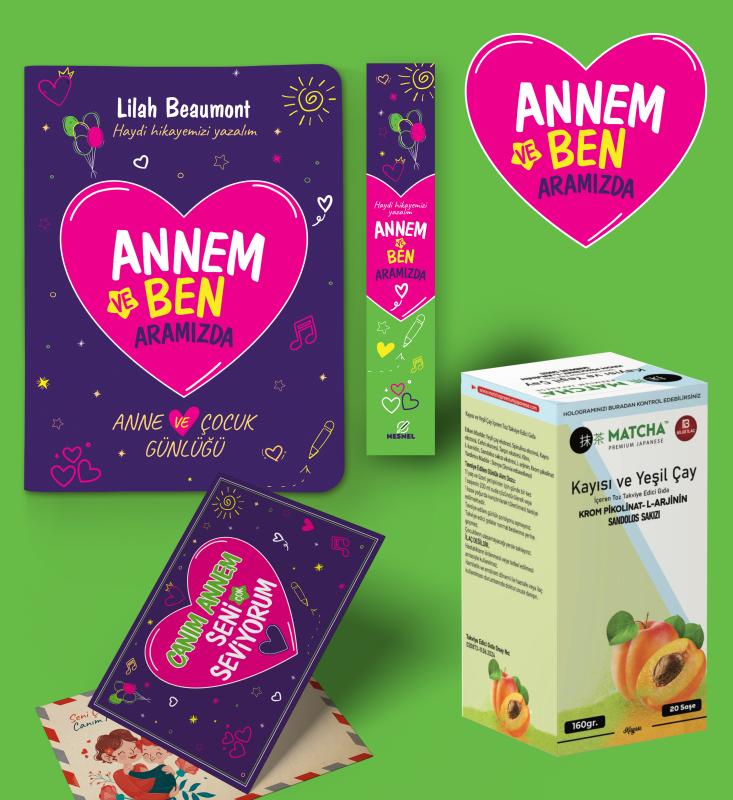 Annem ve Ben Aramizda Günlügü Karpostal-Ayraç ve Kayısılı Matcha Seti