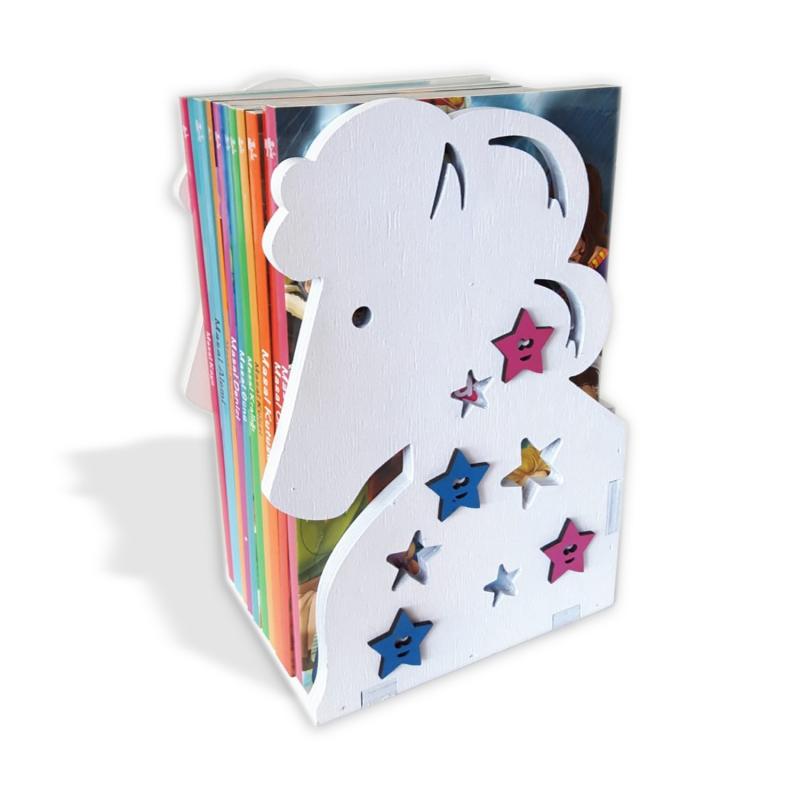 | At Desenli Ahşap Kütüphane, Beyaz Not: Kitaplar ürüne dahil değildir. 135x210 mm kitaplar için uygundur iç genişliği 8,5 cm 21 cm dir. |