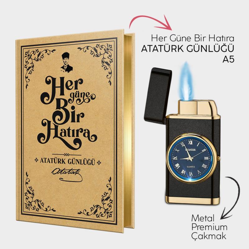 - Atatürk Günlüğü A5 ve Mat Siyah Saatli Çakmak