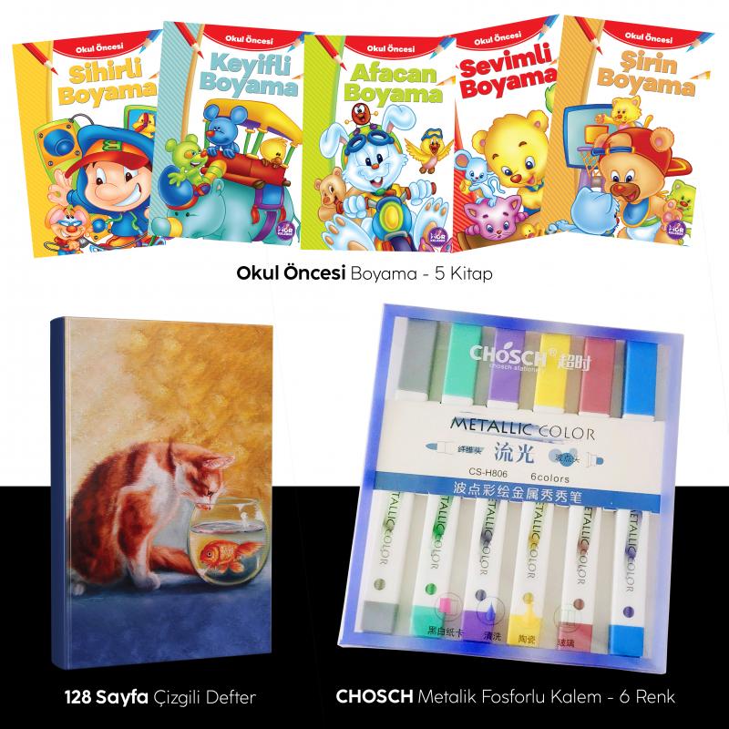 - Beşli Boyama Kitabı - Fosforlu Kalem CS-H806 - Kedi Rüyası Defter