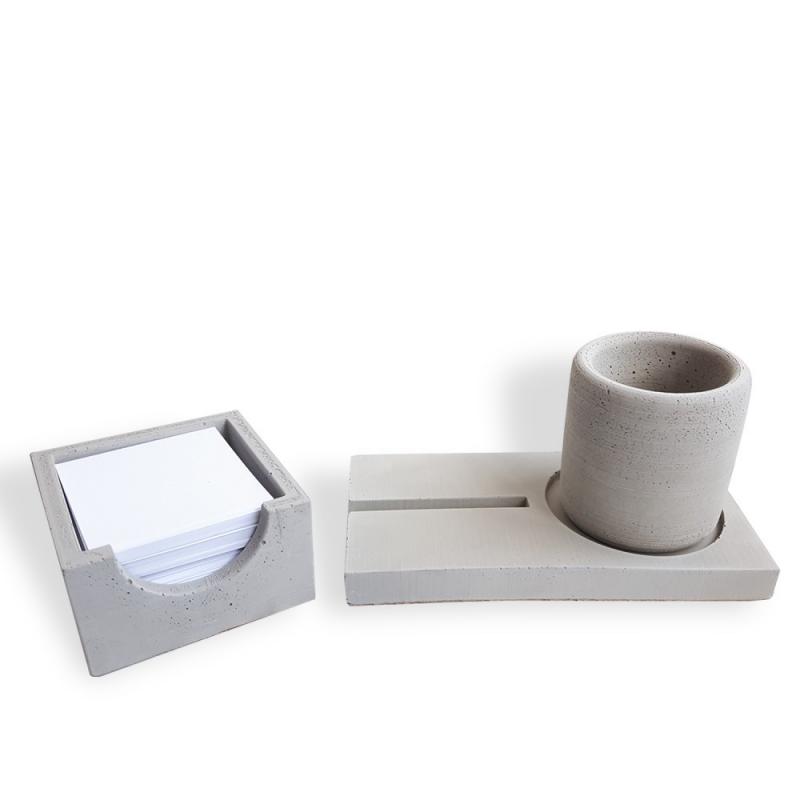 Beton Ofis Seti - Telefon Tutucu, Kalem Kutu, Bloknotluk HK1705