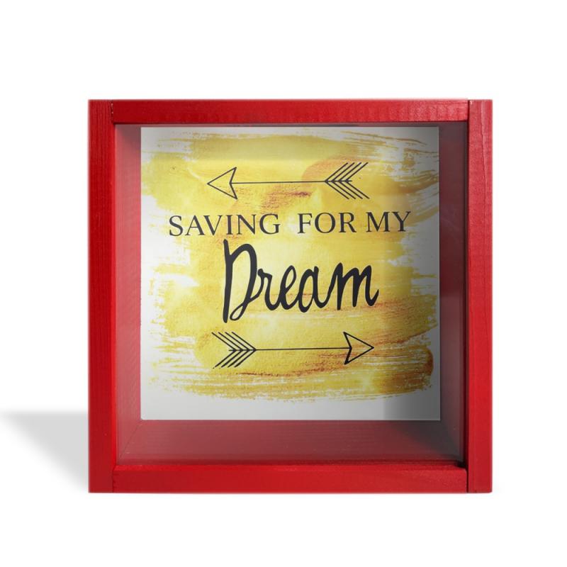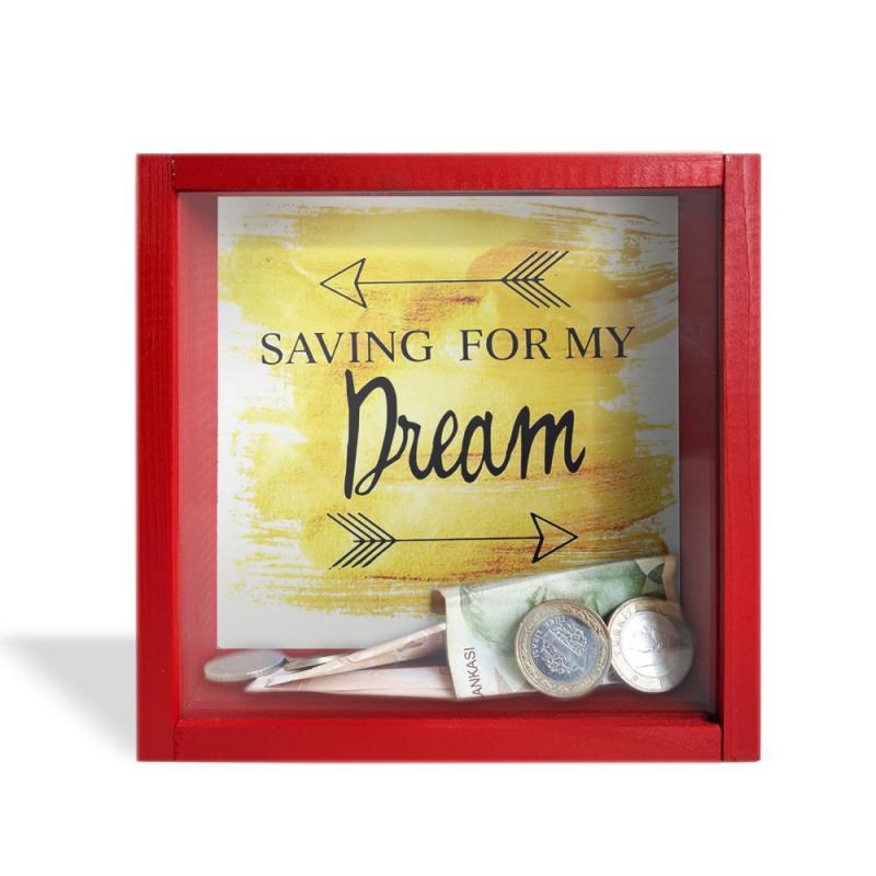 Camlı Ahşap Kumbara Dream Kırmızı HK0657-0011
