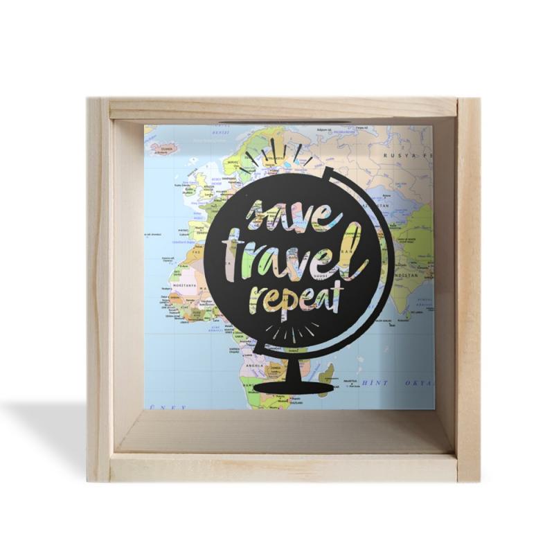 Camlı Ahşap Kumbara Dünya Turu Ham AhşapHK0662-HM