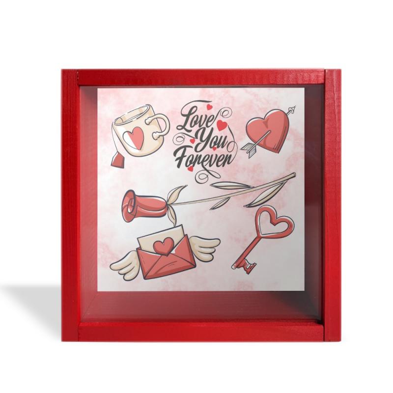 Camlı Ahşap Kumbara ı love Forever Sevgililer Günü Objeleri "Kırmızı"HK0647-0011