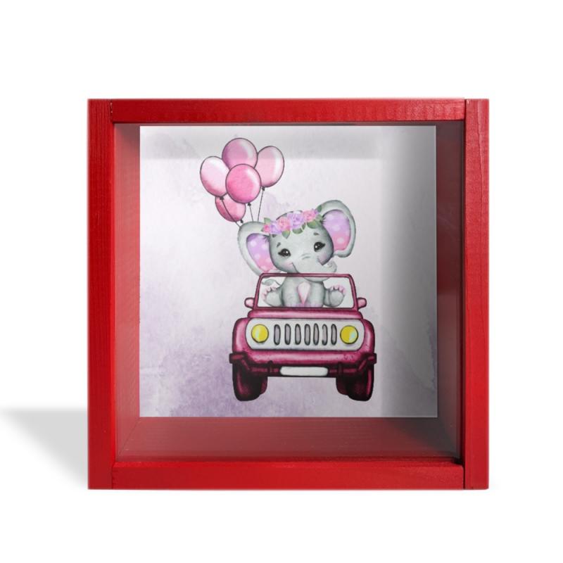 Camlı Ahşap Kumbara Kırmızı Arabalı Fil Kırmızı HK0658-0011
