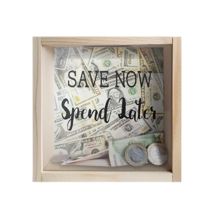 Camlı Ahşap Kumbara Save Now Ham AhşapHK0655-HM