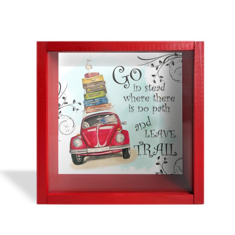 Camlı Ahşap Kumbara Tatil Kırmızı HK0661-0011