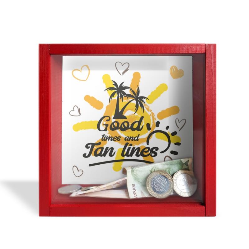 Camlı Ahşap Kumbara Yaz Tatili Kırmızı