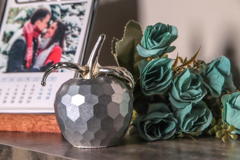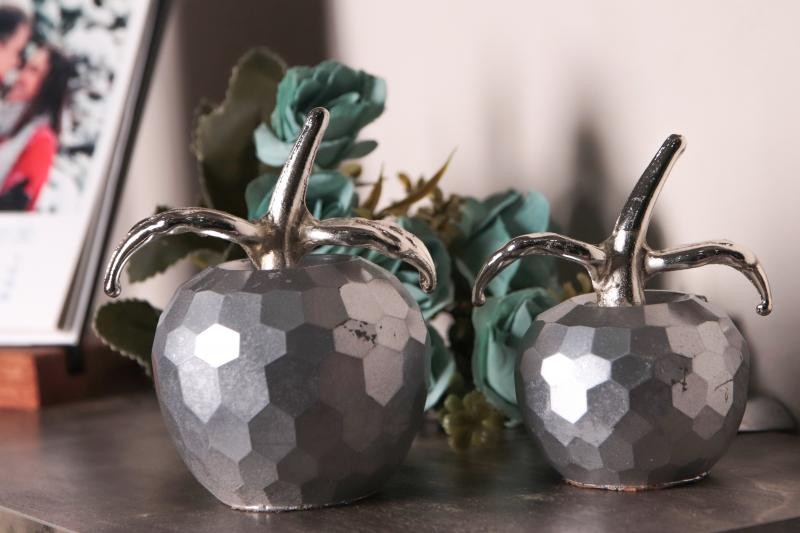 Dekoratif 2'Li Beton Elma - Gümüş HK1534
