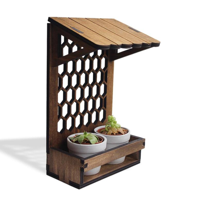 Dekoratif Ahşap, Baklava Desenli 2'li Beton Saksı StandıHK1593