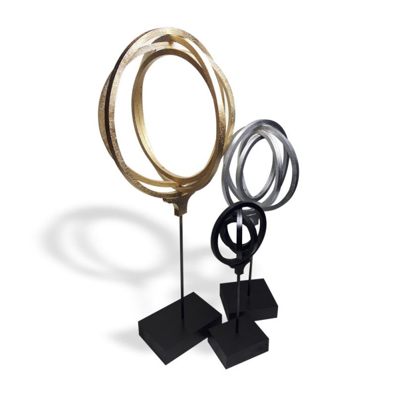 Elenor, Ahşap Halkalı Ayaklı Dünya Biblo 3'lü Set "Siyah, Gümüş, Altın Renk" HK0169