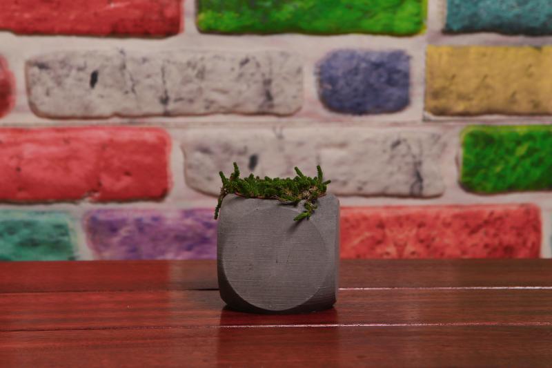 Kare yuvarlak desenli beton saksı sukulent ve kaktüsler için çok şık bir görüntü katacak masalarınıza.