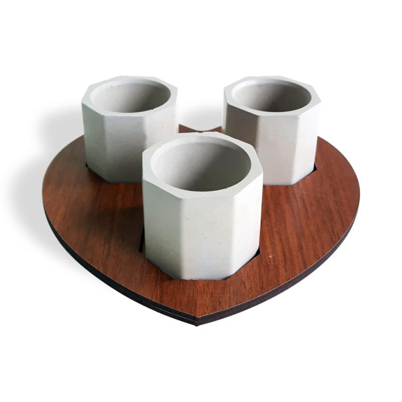 Kalp Ahşap Ayaklı 6gen Beton Saksı Seti