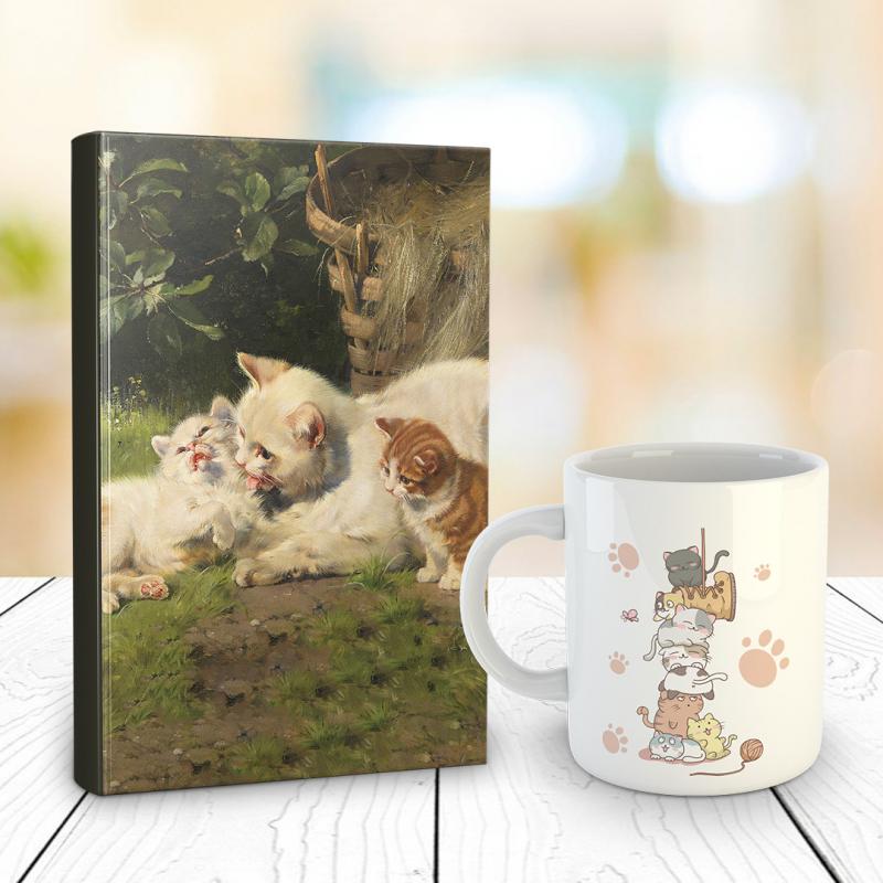 - Kedi Ailesi 128 Sayfa Çizgili defter ve Kedi Kulesi Kupa Bardak