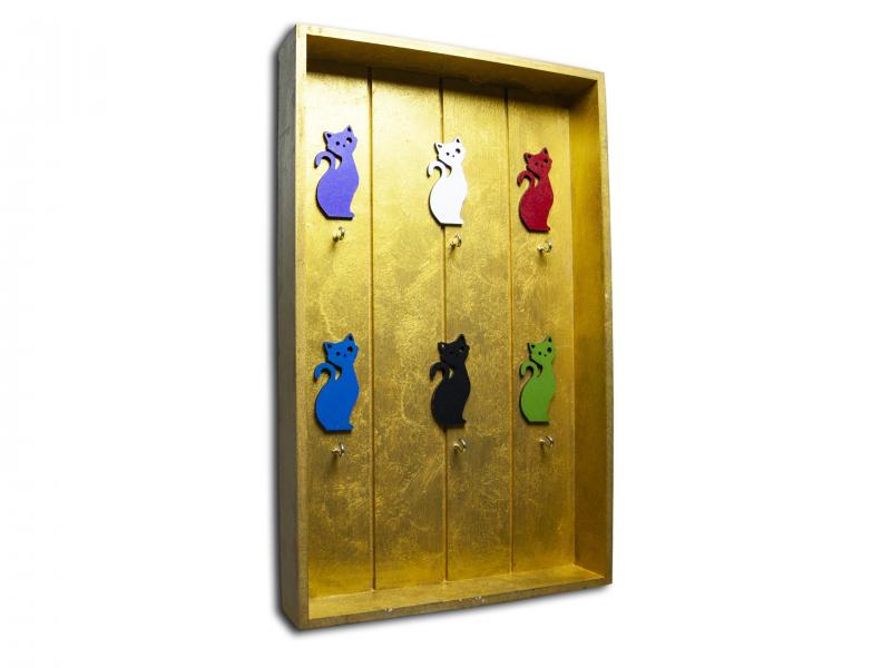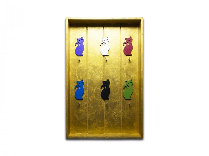 Kedi Figürlü 6'Lı Anahtarlık Kutusu, Altın Sarısı