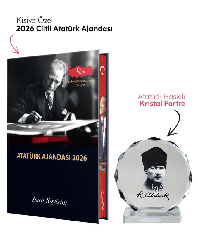 Kişiye Özel 2026 Atatürk Ciltli Ajanda ve Müzkli ve Kristal Portre