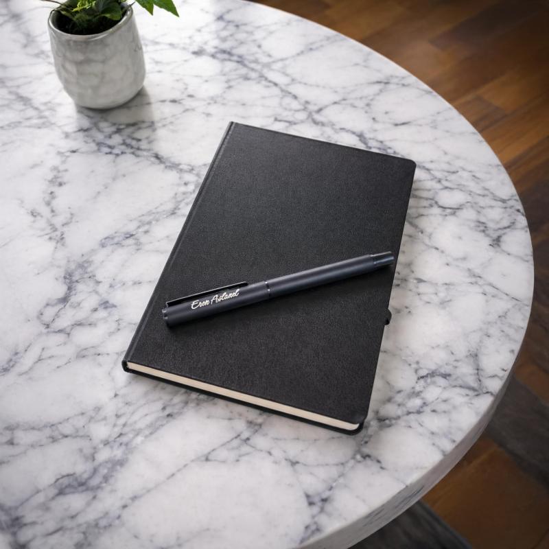Kişiye Özel Soft Deri Defter ve Roller Rubber Kalem - Siyah