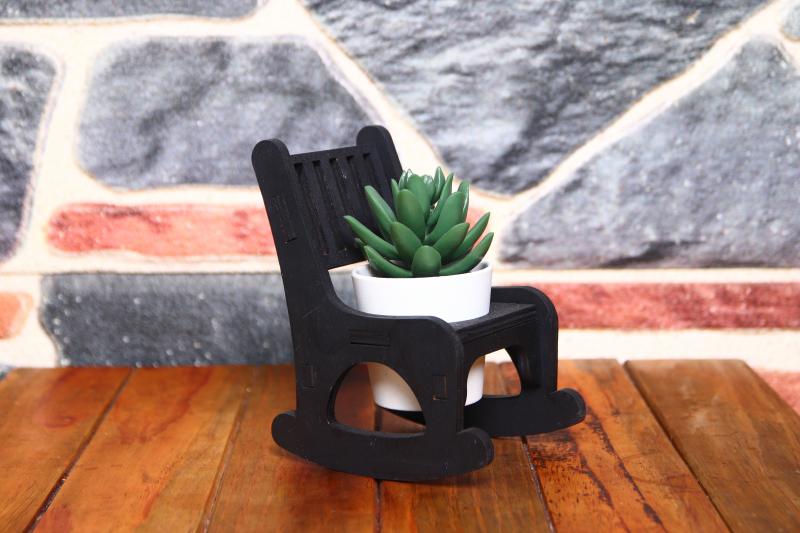 Lora Sallanan Sandalyeli Çiçeklik, Siyah; Saksı ve Kaktüs Fiyata Dahil Değildir.