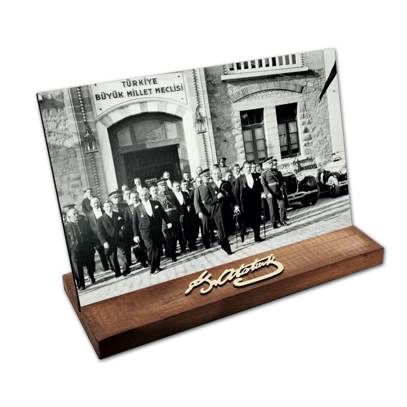 Masaüstü Ahşap Tablo - Atatürk İmzalı ve Resimli Model 7HK2510-07