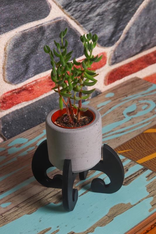 Mia H Standlı Küçük Silindir Beton Saksı, NOT: Bitki ürüne dahil değildir.Siyaha boyanmış şık ahşap altlığıyla gelen silindir şeklindeki beton saksı içinde şık bitkiler yetiştirebilirsiniz Masalarınızı renk katacak.