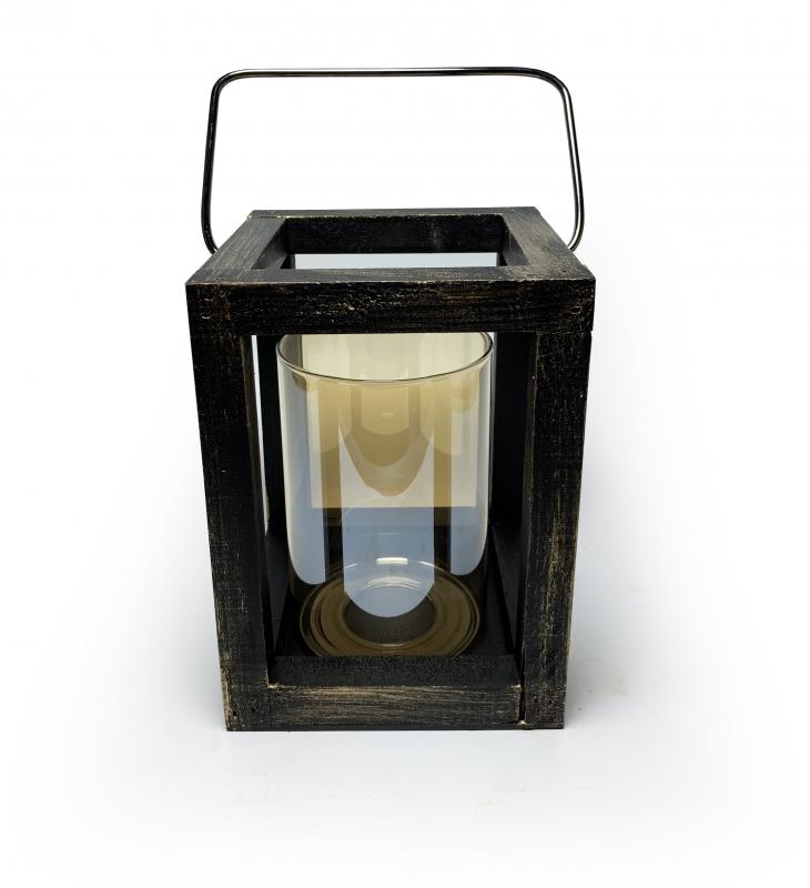 Orta Ahşap Siyah Altın Varak Fener Mumluk HK0976-SAV
