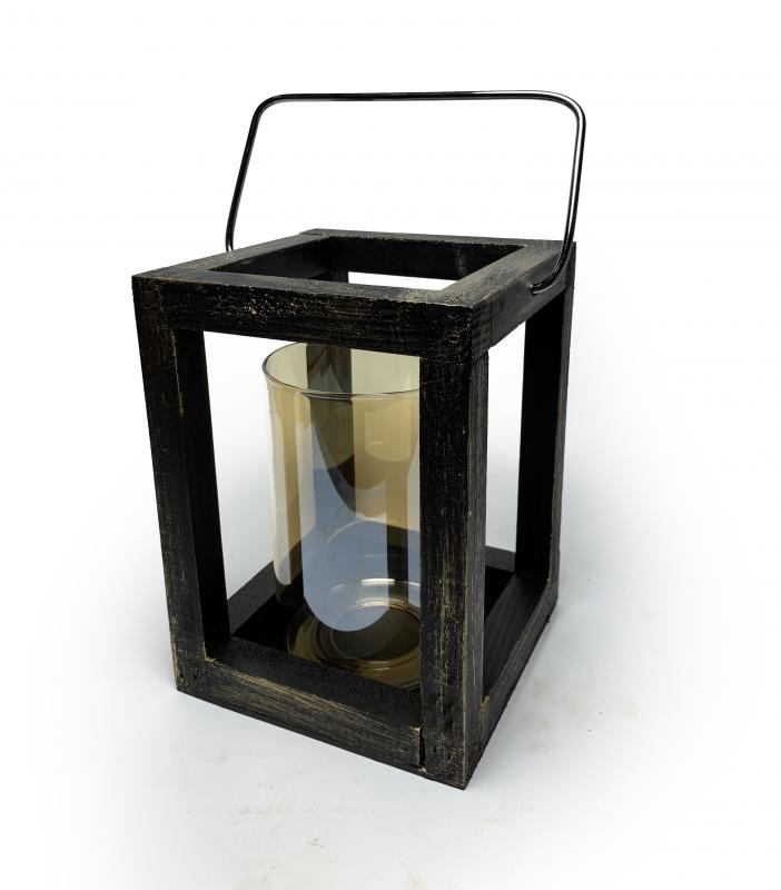Orta Ahşap Siyah Altın Varak Fener MumlukHK0976-SAV