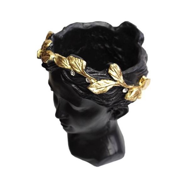 | Orta Helen Beton Saksı, Siyah Altın Varak Taçlı, Kristal Taşlı |