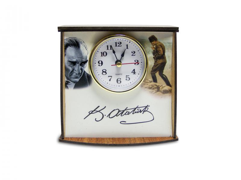 İmzalı Ahşap Masa Saati