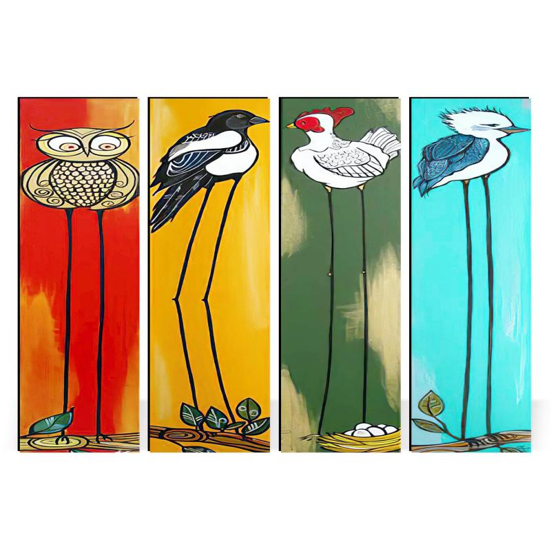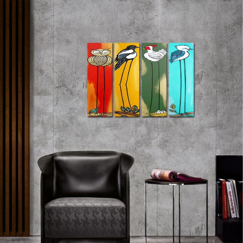| Renkli Kuş Baskılı 4'lü Ahşap Tablo Model 1 |