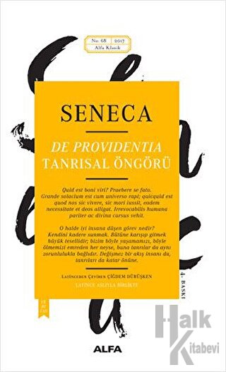 İS 65 yılında İmparator Nero’nun emriyle intihar ederek yaşama veda eden Romalı düşünür Seneca’nın De Providentia’sı (Tanrısal Öngörü) talih, kader ve tanrısal öngörü gibi Stoa felsefesine ilişkin belli başlı kavramların irdelendiği en önemli metinlerden biridir. Hitabet sanatının incelikleriyle örülü üslubuyla klasik bir edebiyat metni olmasının yanı sıra içeriğinin Stoacı ahlak ilkeleriyle döşeli oluşu, tanrı ve insan ilişkilerinin ayrıntılı olarak sorgulanması, iyi ve kötü değerlerinin açık ve seçik ifadelerle aydınlatılması, yaşam ve ölüm kavramlarına yaklaşımı açısından değerlendirildiğinde, Roma’dan günümüze kalan örnek bir ahlak felsefesi metni özelliği kazanır. İnsan zihni evreni, tanrıyı, insanı, iyiliği, kötülüğü, doğayı, kaderi, talihi, talihsizliği, sabretmeyi, yaşamı, ölümü sorguladıkça, satırlarında edebiyatla felsefeyi buluşturan De Providentia samimi diliyle sonsuza değin ışık tutacaktır ona.