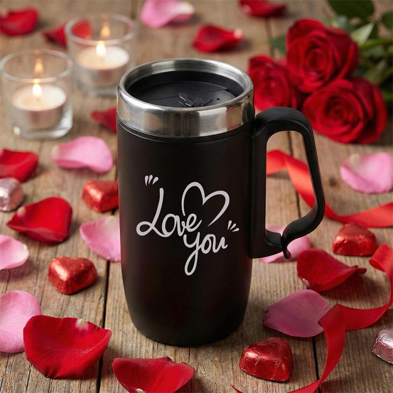 Sevgililer Gününe Özel - Love You Kulplu Bardak Termos