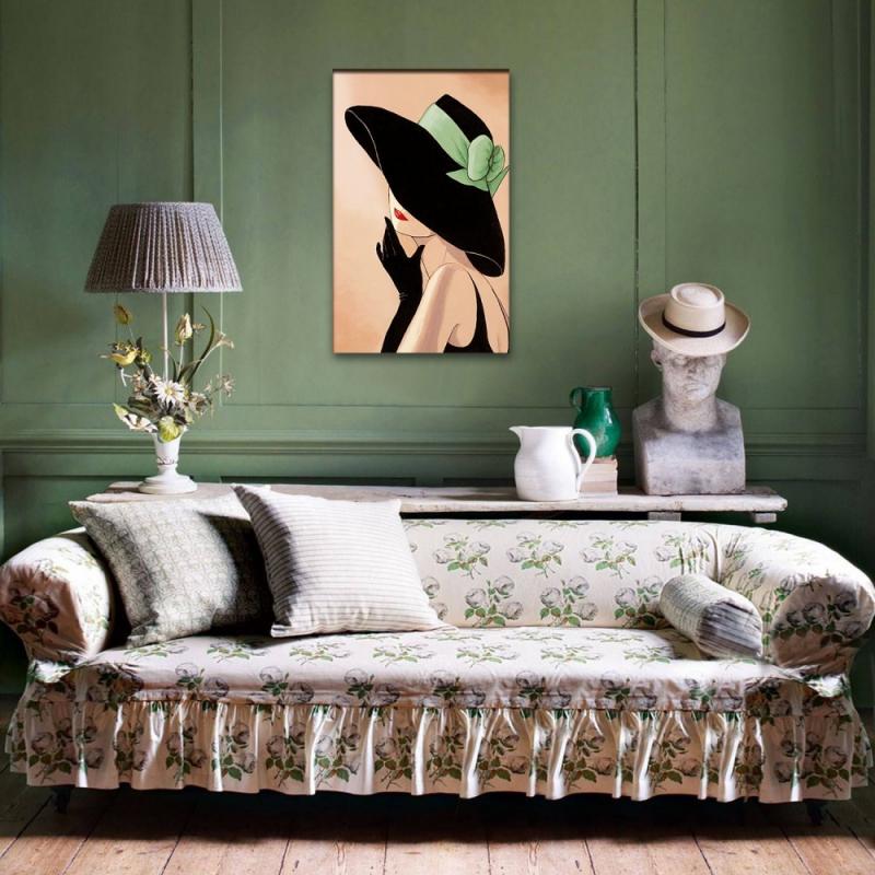 Vera Yeşil Fiyonk Şapkalı Kadın Baskılı Retro Ahşap Tablo
