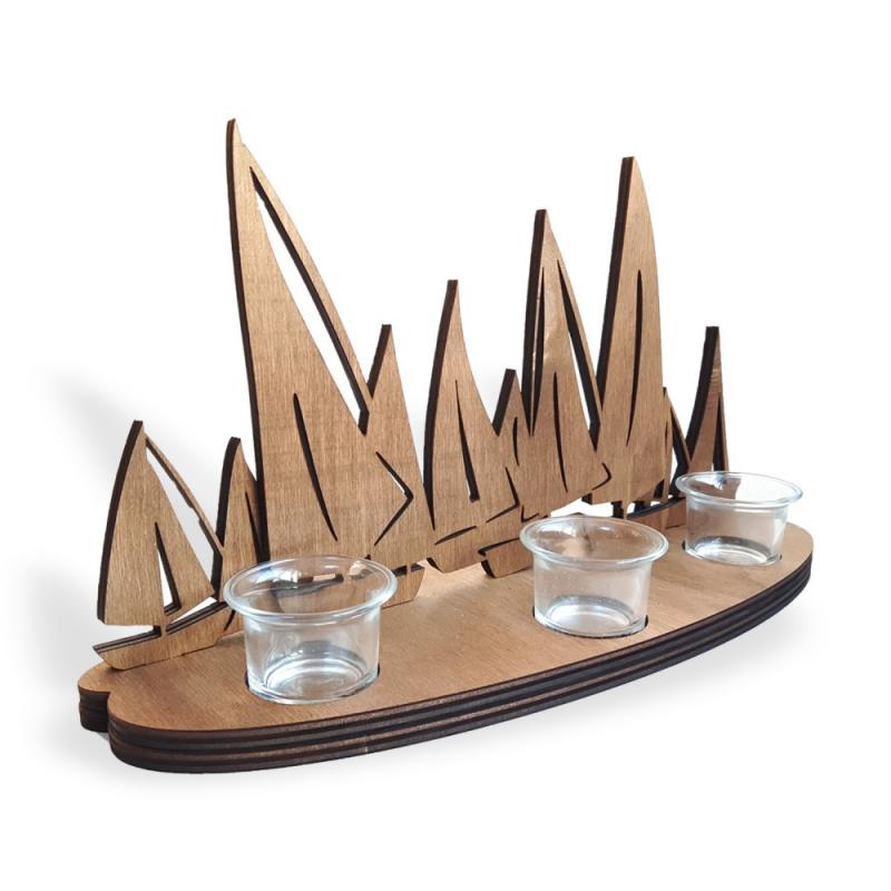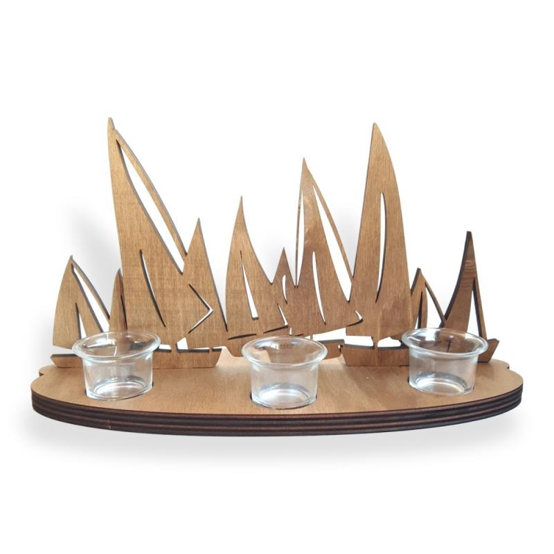 Yelkenli Ahşap Oda Süsü 3'lü T-Lightlı HK0225