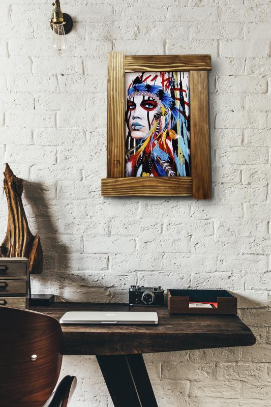 3D Kızılderili Kadın Ahşap Tablo
