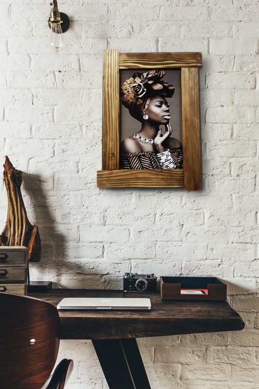 3D Şapkalı Siyahi Kadın Ahşap Tablo HK0008