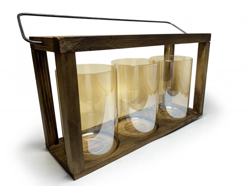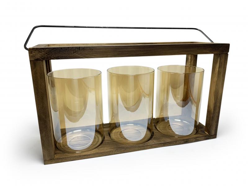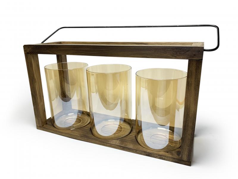 3'lü Ahşap Fener Mumluk HK0974