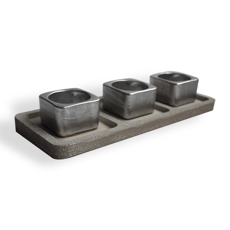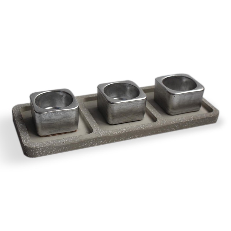 3'lü Beton Tepsili T-Light - Gümüş Rengi