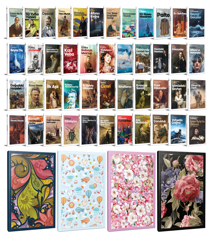 45 Dünya Klasiği ve 4 Adet 64 Sayfa Çiçekli Çizgili Defter Seti -2