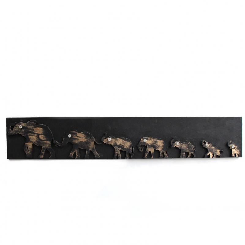 7'li Kabartma Fil, Ahşap Tablo, Siyah Üstü Altın Varaklı