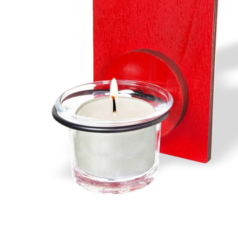 Ahşap Ev Desenli Tekli T-Light Cam Mumluk "Kırmızı"