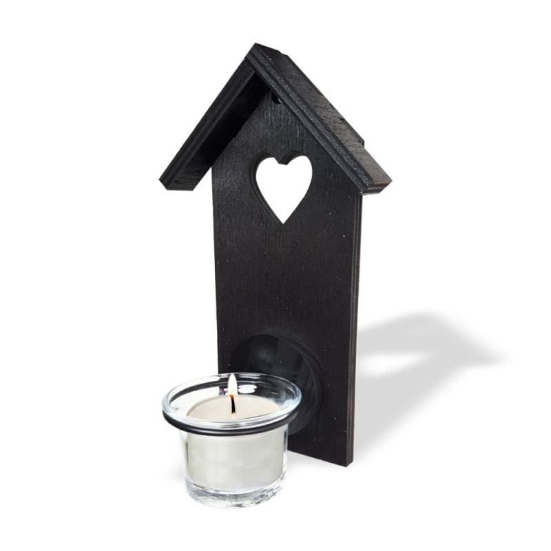 Ahşap Ev Desenli Tekli T-Light Cam Mumluk "Siyah" HK0226-0002