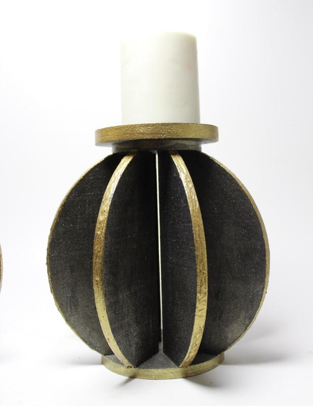 | Ahşap Küre Mumluk Siyah Üzerine Altın Varaklı, Büyük |
