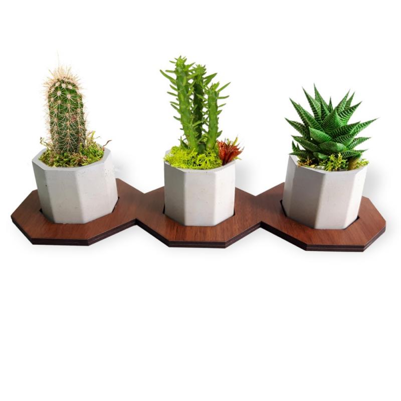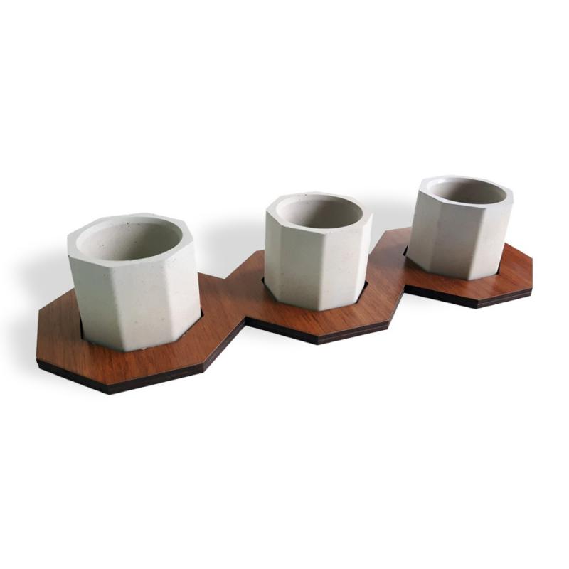Altıgen Ahşap Ayaklı Beton Saksı Seti HK1659